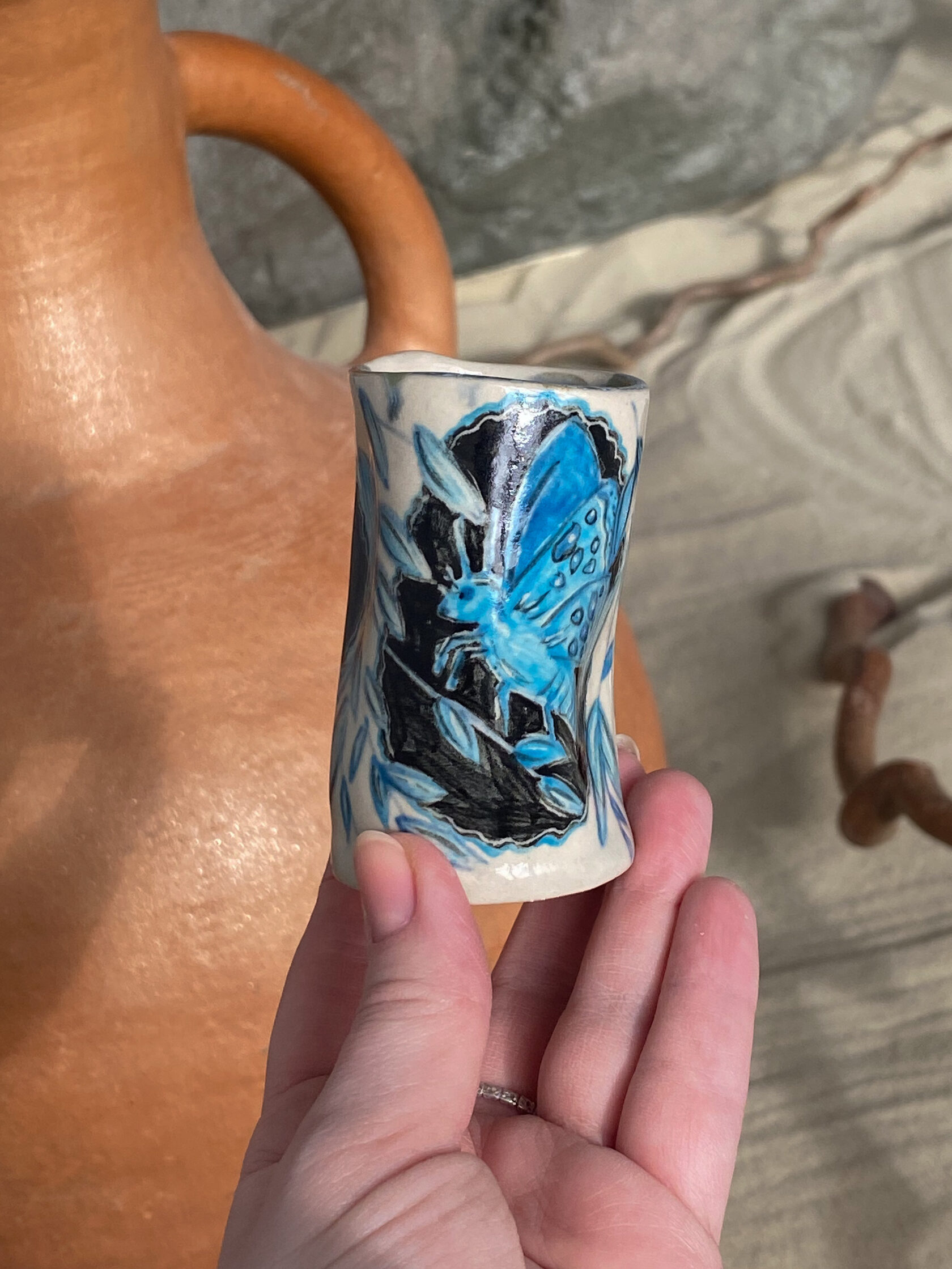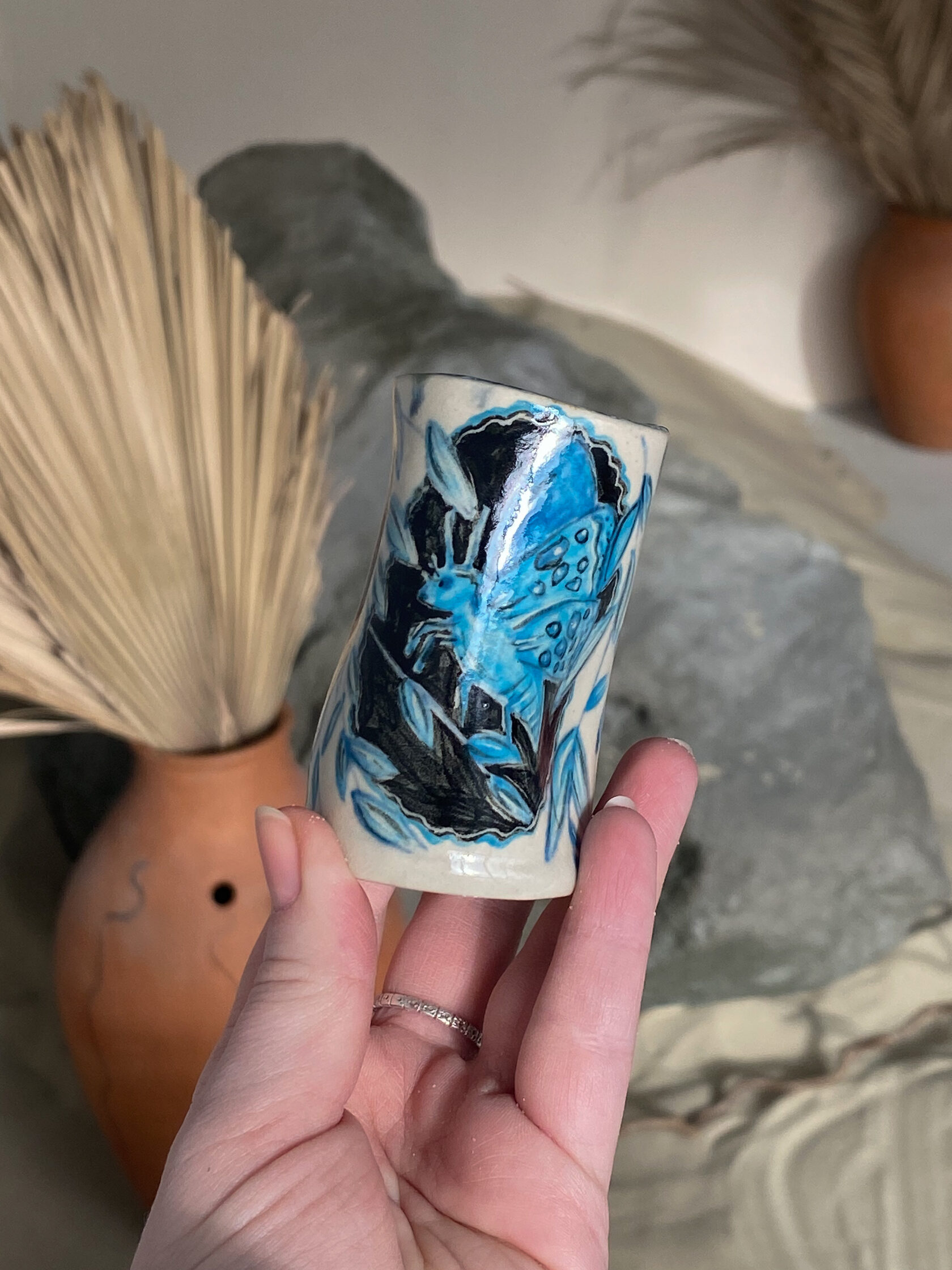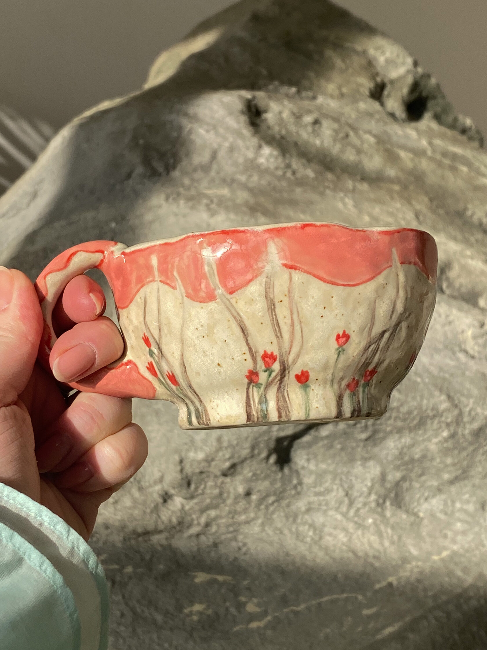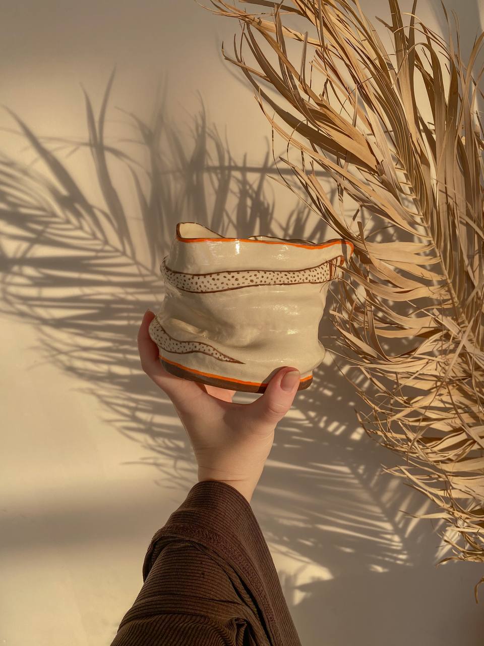 Я чувствую этот мир очень глубоко и сильно. Для меня чувственность, эмпатия, искренняя привязанность и забота о своем доме, о близких и об этом мире являются не просто важными словами, а основой существования. Своими работами я говорю на универсальном языке любви и принятия. Мое творчество — это протянутая рука. Это попытка сказать: «Вот, возьми эту маленькую частичку любви с собой. Забери её в свой дом. Смотри на неё, используй в быту, пей чай из этой кружки и почувствуй то самое тепло, которое я вложила в неё».